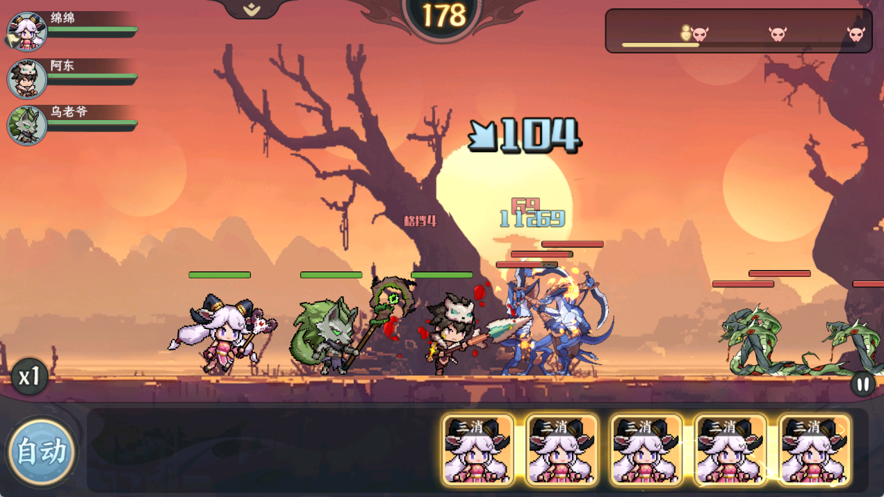 《山海幻境》的视觉风格还是非常亮眼的。游戏采用现代像素艺术与东方古典元素结合的设计语言,既保留了复古游戏的怀旧感,又通过细腻的色彩搭配和动态光影效果,营造出瑰丽奇幻的上古世界。例如,主城“五灯城”的场景设计中,五座巨型灯塔在浓雾中若隐若现,街道两侧的灯笼与飘动的符咒交织出神秘氛围;而战斗场景则通过粒子特效和技能动画,将神兽释放大招时的震撼感展现得淋漓尽致。