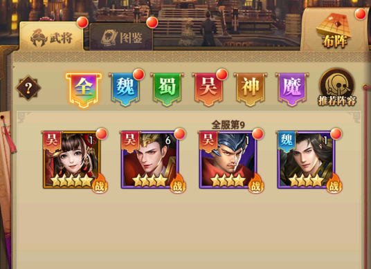 游戏独创“魏蜀吴神魔”五维阵营系统,每个阵营拥有独立技能树与克制关系。魏国:以“强攻流”为核心,夏侯惇的“刚烈”提供全员攻击力加成,典韦的“死战”使前排武将获得30%免伤,适合正面突破。蜀国:主打“破甲流”,关羽的“青龙偃月”可降低敌方30%防御,张飞的“蛇矛突刺”对低血量目标造成额外伤害,形成收割链。吴国:依赖“灼烧流”,周瑜的“火烧赤壁”对全体附加灼烧状态,每回合造成真实伤害,太史慈的“破甲箭”则扩大灼烧收益。神阵营:侧重辅助与控制,神诸葛亮的“八阵图”是全游戏唯一群体复活技能,神庞统的“连环计”可传递负面状态。魔阵营:追求极致爆发,魔吕布的“魔神降世”对全体造成200%伤害,魔关羽的“单刀赴会”则无视防御直接打击后排。