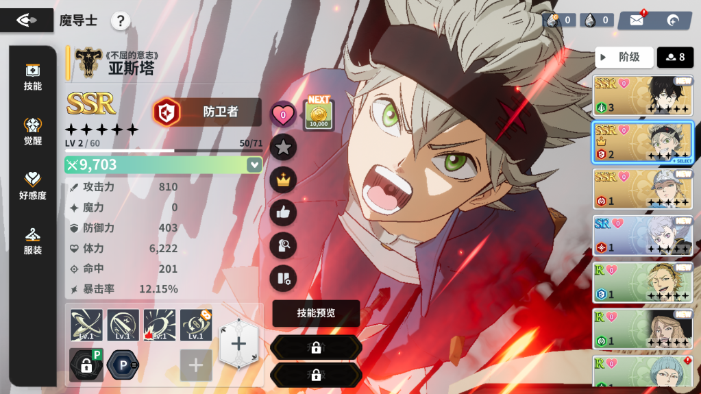角色培养采用“等级+觉醒+技能”三线并行模式。等级提升需消耗经验药水与金币,觉醒需同名角色碎片(可通过抽卡、副本掉落获取),技能升级则需技能书。值得注意的是,低稀有度角色(如R级修女莉莉)通过觉醒可提升至SSR级属性,这种设计为平民玩家提供了逆袭空间。养成资源分为经验、金币、碎片、装备四大类。经验与金币通过主线任务、日常副本(如“青绿之森”经验本、“金币矿洞”金币本)稳定获取,碎片主要依赖抽卡与活动奖励,装备则需挑战“记忆大厅”装备本或参与公会BOSS战。对于平民玩家,推荐“亚斯塔+诺艾尔+修女莉莉+玛格那”的低配组合,亚斯塔负责输出,诺艾尔承担坦克职责,修女莉莉提供治疗,玛格那补充火属性伤害,该组合全角色可免费获取,培养成本低且适配多数副本。