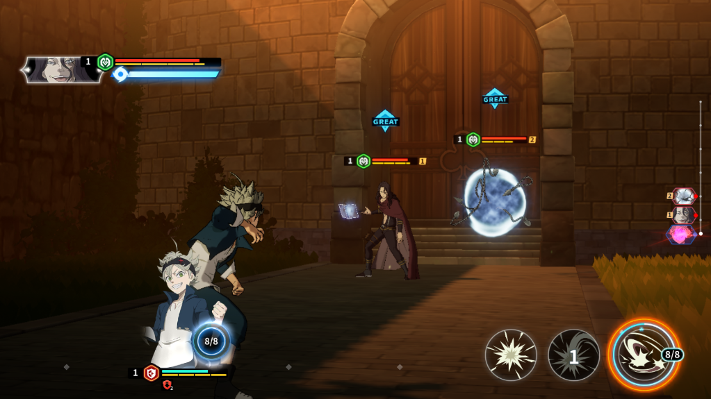 游戏采用全3D卡通渲染技术,将《黑色四叶草》的经典场景与角色以高精度建模重塑。从四叶草王国的魔法骑士团总部,到红心王国的秘境森林,每个场景都保留了原作动画的标志性元素——例如魔法帝雕像的金色纹路、黑色暴牛基地的破败石墙,均通过光影效果与材质细节展现出极强的沉浸感。角色设计方面,亚斯塔的肌肉线条、诺艾尔的皇家礼服褶皱、夜见的披风飘动轨迹,均通过动态捕捉技术实现流畅动作,配合原班声优的全语音配音,让战斗中的必杀技释放兼具视觉冲击与听觉震撼。