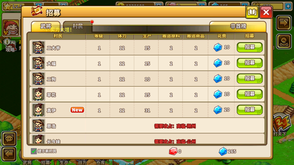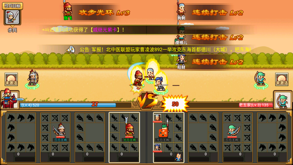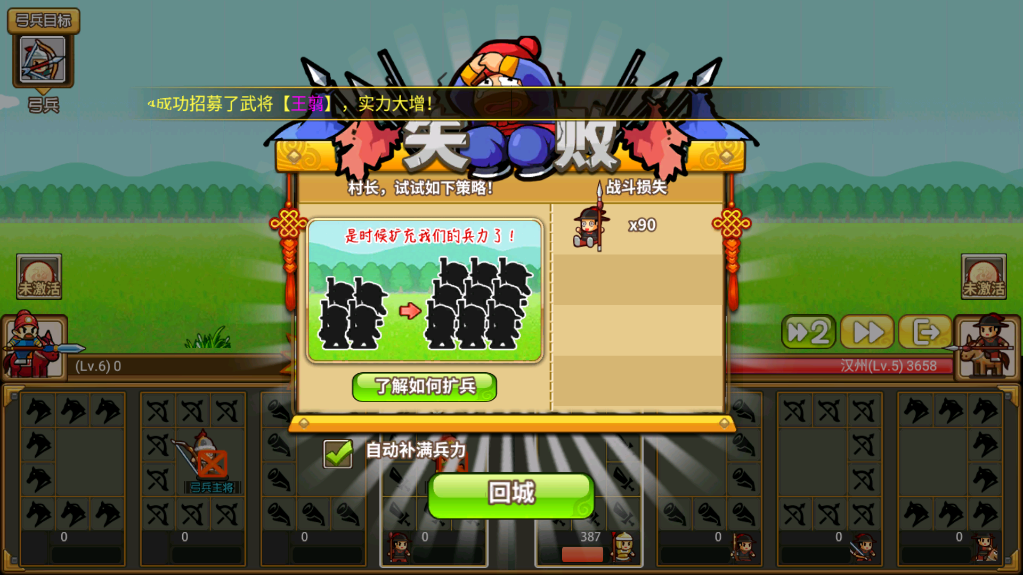 神将合体是游戏的特色养成玩法,玩家需满足以下条件:村长等级达到60级、拥有神将(如神张飞)、12名同兵种武将。合体后神将可吸收其他武将的属性与技能,例如合体1名生命值武将可提升神将生命值,合体1名攻击力武将可提升神将攻击力。合体分为6个阶段,每个阶段需消耗将魂与金币,合体至第3阶段可召唤“召唤兽”(如铠甲兽、貉、龙),召唤兽拥有独立技能与属性,可在战斗中协助神将作战。