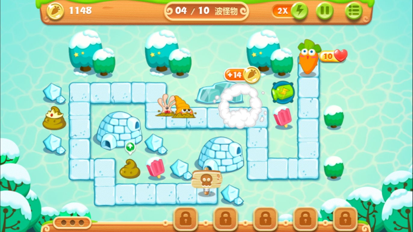 《保卫萝卜2:极地冒险》是一款非常优秀的塔防游戏。它继承了前作的经典元素和风格,又在画面、玩法、炮塔设定等方面进行了创新和升级,为玩家带来了一场更加精彩、更加刺激的萌系塔防盛宴。无论你是《保卫萝卜》系列的老玩家,还是塔防游戏爱好者,都不容错过这款游戏。快来加入这场保卫萝卜的冒险之旅吧,与可爱的萝卜一起抵御怪物的入侵,守护属于你们的欢乐世界!