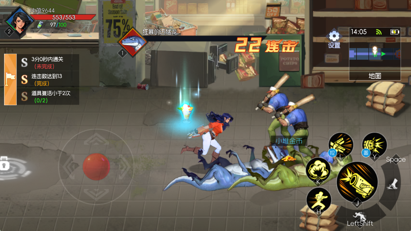 《街机恐龙》的核心玩法采用了经典的横版闯关模式,这是对原作街机玩法的一种传承。玩家将操控角色在各个关卡中前进,击败沿途的敌人,突破重重障碍,最终挑战关卡BOSS。关卡设计丰富多样,每个关卡都有独特的地形和敌人配置,为玩家带来了不同的挑战。例如,在森林关卡中,玩家需要躲避树木的阻挡,同时还要小心从树上跳下来的敌人;而在沙漠关卡中,玩家则要应对沙尘暴的干扰,以及在沙地中行动不便的问题。
