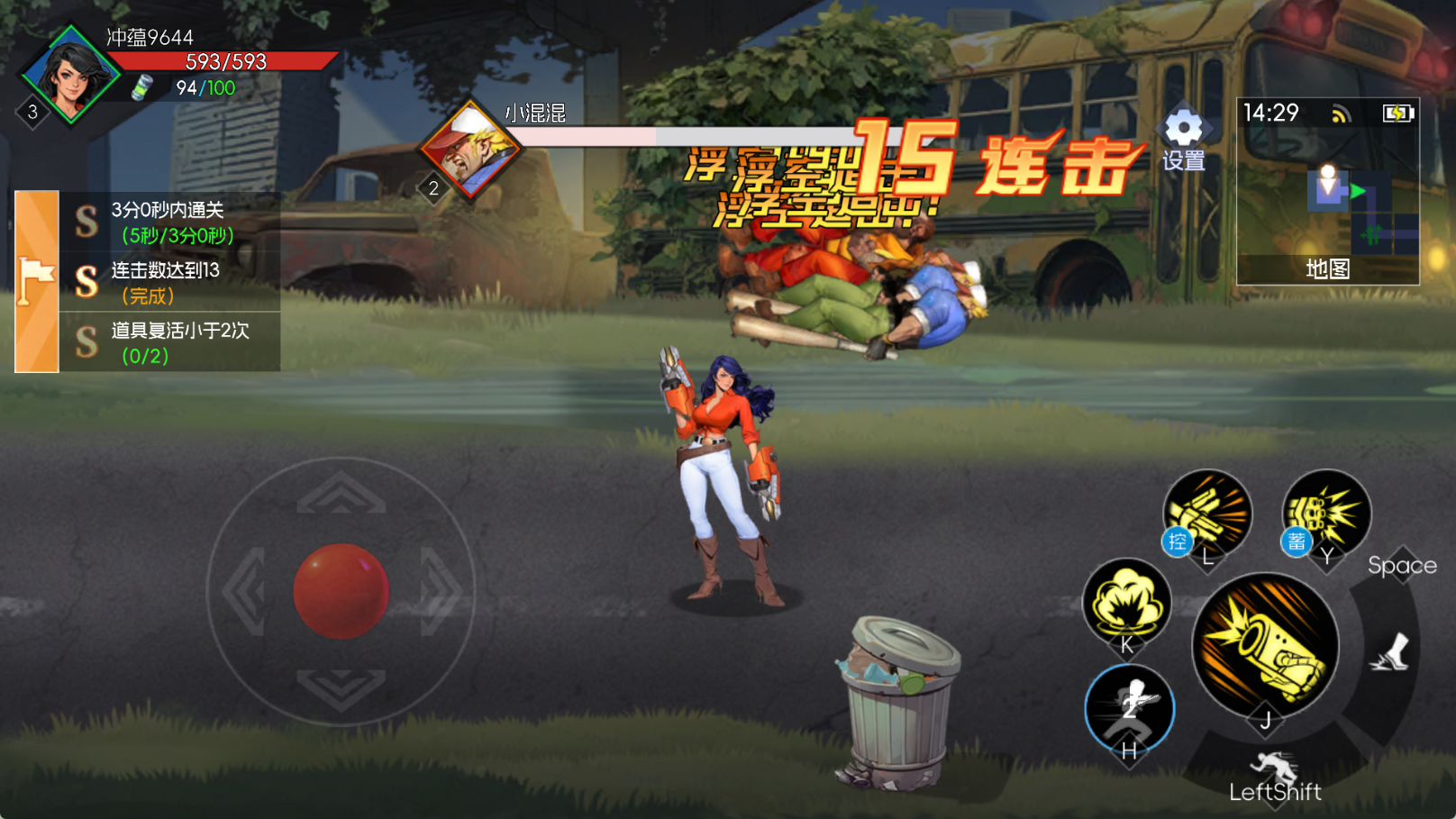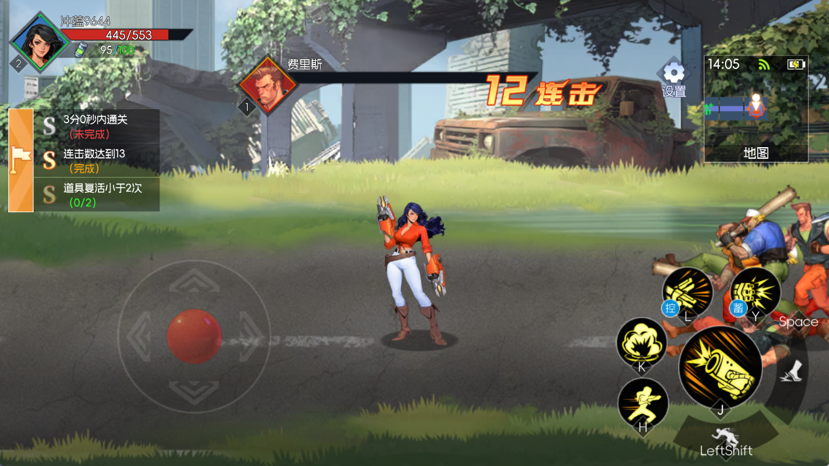 《街机恐龙》的战斗系统强调流畅的操作反馈和极致的打击感,这是游戏的一大亮点。游戏采用了双操式战斗系统,以按键操作代替摇杆搓招,重现了街机格斗的精髓。玩家通过简单的按键组合,就可以释放出各种华丽的技能和连招,如黄帽穆斯塔法的飞踢、汉娜的三连刀、迈斯的摔头技能等,每个角色的技能都有独特的动作设计和音效效果,让玩家在战斗中感受到拳拳到肉的爽快感。在战斗中,玩家还可以利用环境元素进行攻击,增加了战斗的策略性。例如,玩家可以投掷汽油桶、拆解建筑部件等,对敌人造成额外的伤害。此外,游戏还保留了建筑破坏、道具拾取等街机交互机制,玩家在战斗中可以破坏场景中的建筑物,获取隐藏在其中的道具和奖励,这种互动性让战斗更加真实有趣。