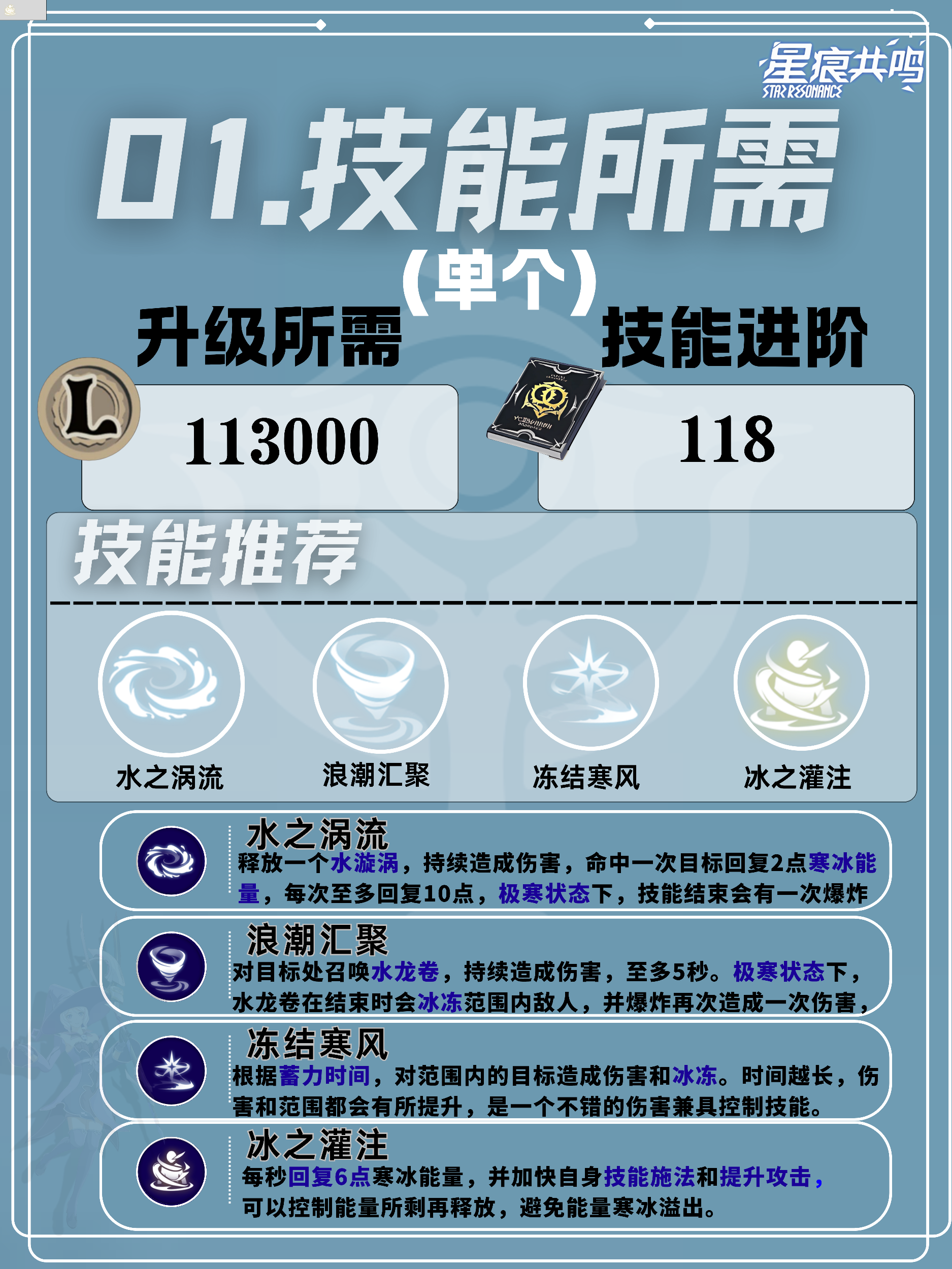 技能方面推荐水之涡流,浪潮汇聚,冻结寒风和冰之灌注。