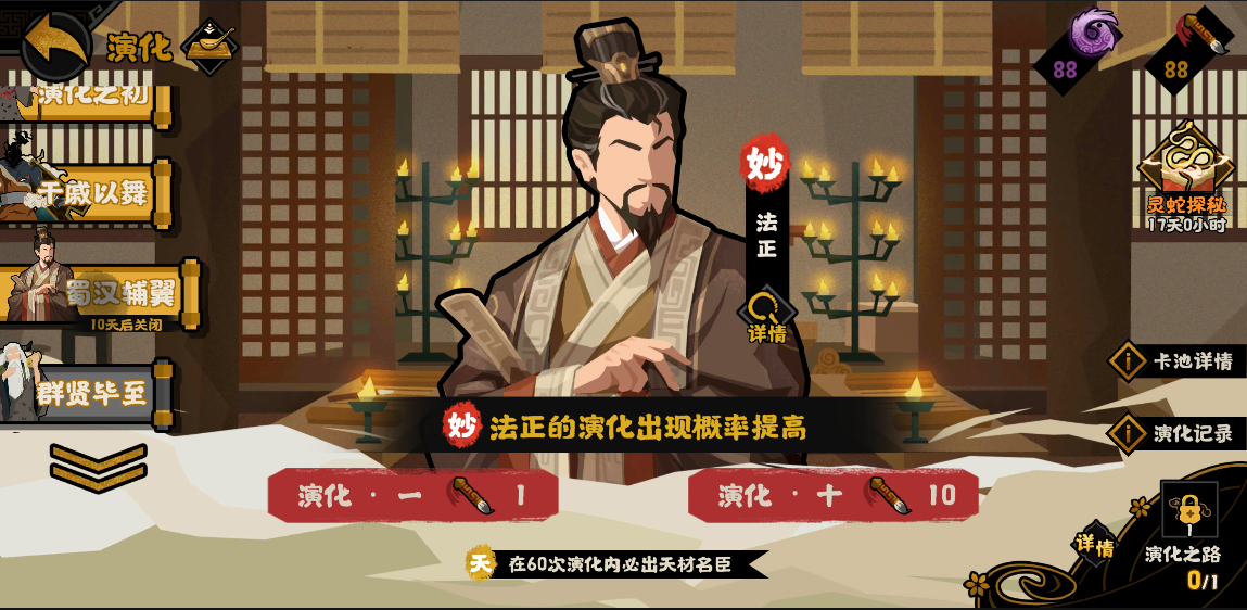 1月24日至1月31日,蜀汉辅翼。妙级名臣法正演化概率限时上升!