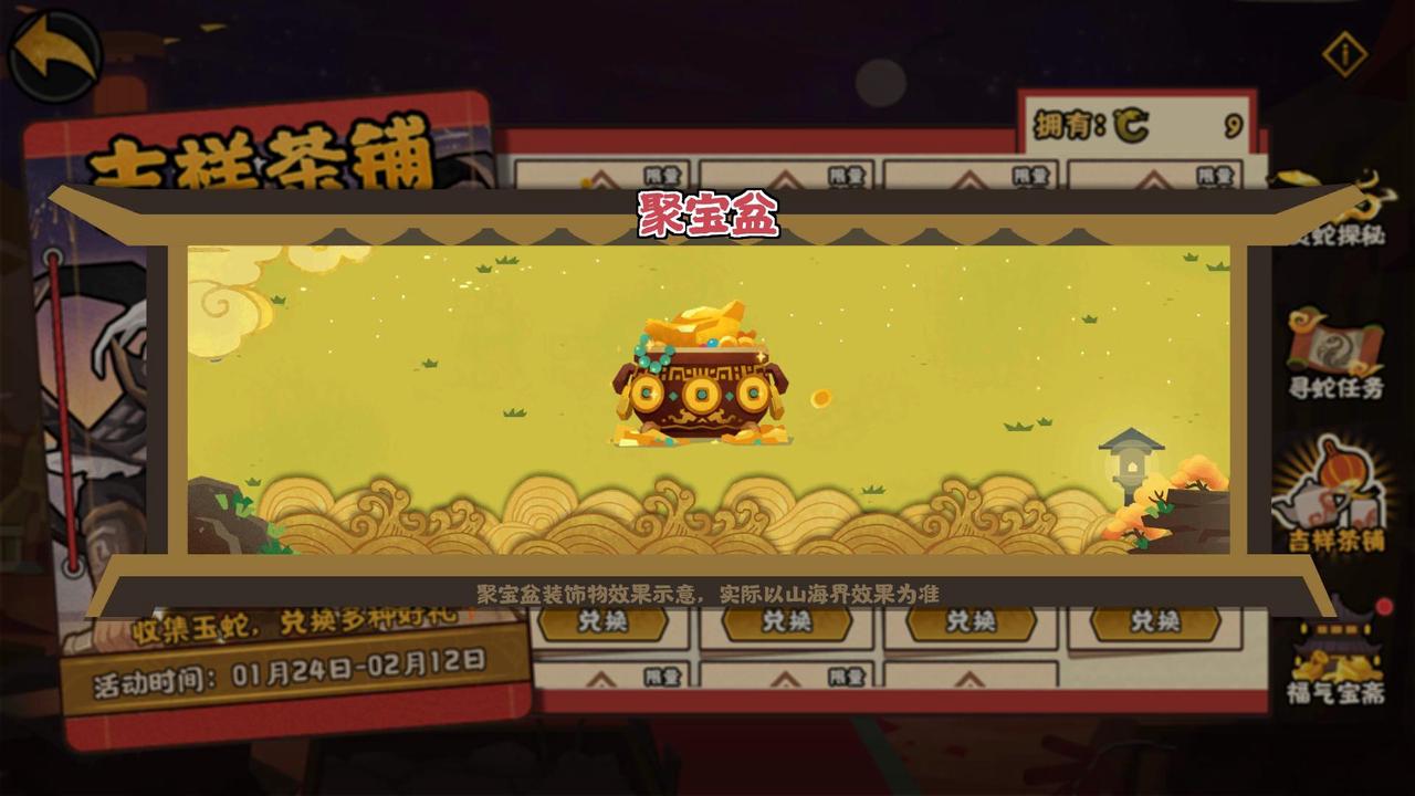 1月24日至2月20日,新春期间界外探索可获取新春限定装饰摆件!蛇年限定摆件‘金蛇门’、全新摆件‘发财树’、摆件‘宝葫芦’等你探索!