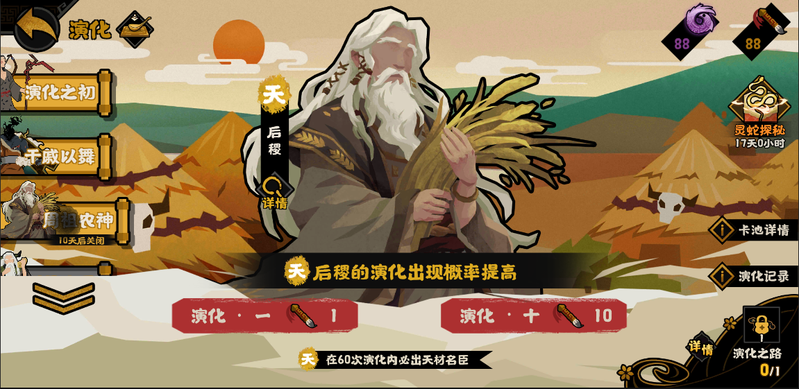 1月24日至2月6日,周祖农神。天材名臣后稷演化概率限时上升!