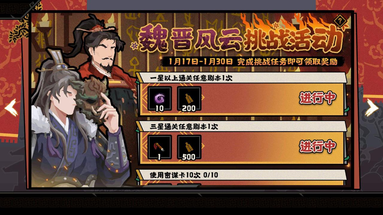 1月17日至1月30日,新春版本全新剧本挑战活动即将开启!届时完成任务即可获取丰富道具资源,玄玉、龙须笔等你来拿٩(ˊ ᗜˋ *)و 快来体验全新的剧本吧,还有全新玩法世家联姻、科举入士等你体验哦。