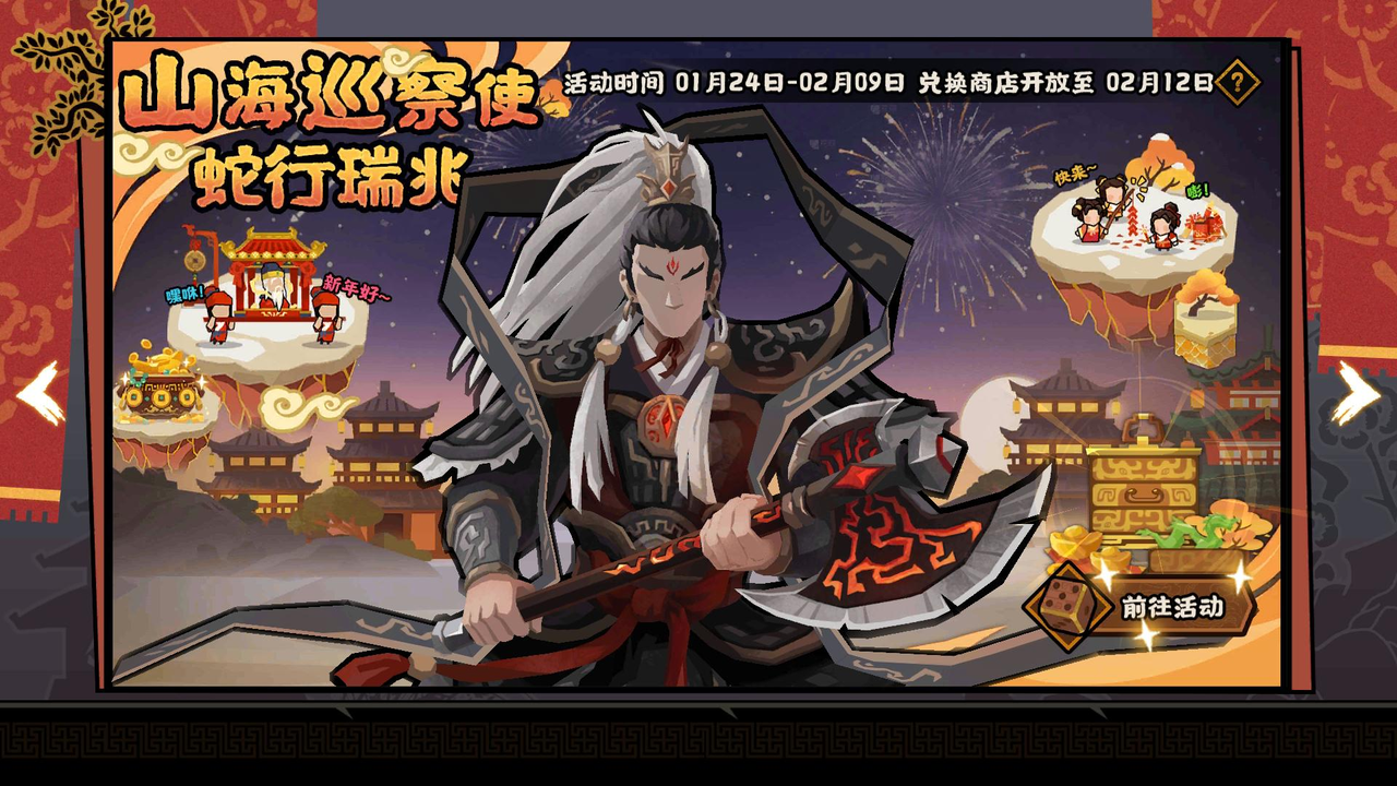 1月24日至2月9日,新春版本蛇行瑞兆山海巡察使即将登场!全新动态华服、新春全新摆件、封神英杰名臣自选箱、龙须笔...丰富内容等你来拿!