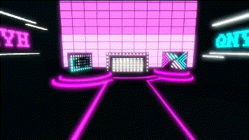 演唱台!黑色的舞台上,亮紫色的流光灯环绕着舞台底座,粉色的背景光伴随音乐闪烁,让舞台变得