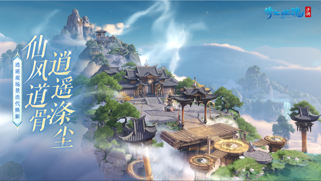1.8 仙风道骨,逍遥涤尘。逍遥观场景迭代,全新晴雨天气切换,且于云海翻涌中乘风问道。