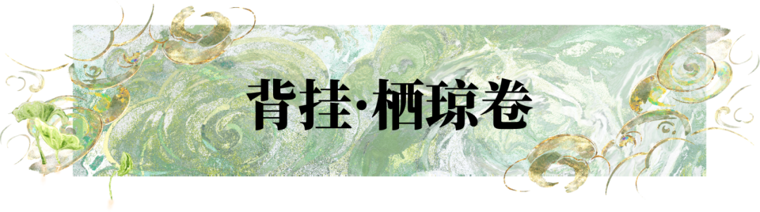 朝将书卷开,暮对春风醉,背挂·栖琼卷由卷轴和灵狐组成。卷轴未展,却可见其中的青绿山水;缠绕其上的丝带采用渐变天青色,飘动时如蘸了墨的笔锋在空中挥毫。