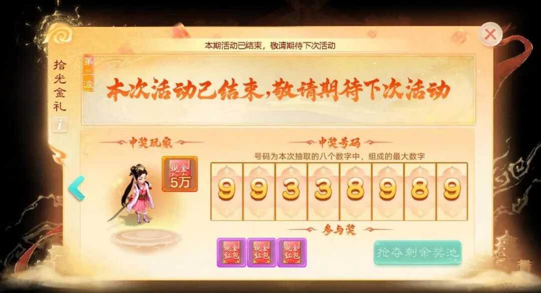 8)参加每一波抽奖的少侠,若未中奖,可在当前波次抽奖中,参与剩余奖池的抢夺瓜分;