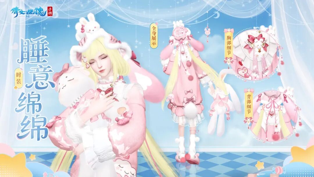 1.秋意懒懒,睡意在香香暖暖软软中绵延。全新佳品时装【睡意绵绵】温馨上架!身着它,仿佛坠入秋日的甜梦。购时装礼盒即赠专属配套动作与可爱配饰兔眠眠(女)/龙呜呜(男)。首月限时7.9折特惠,快来把这份软糯秋意收入囊中!