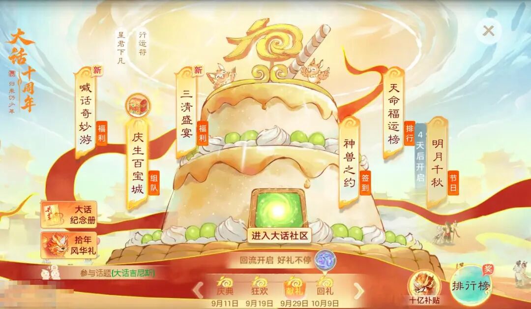 共话十年 · 庆典篇 · 大话十周年,十月黄金周即将开启,永久提升道具“福糕”大放送!