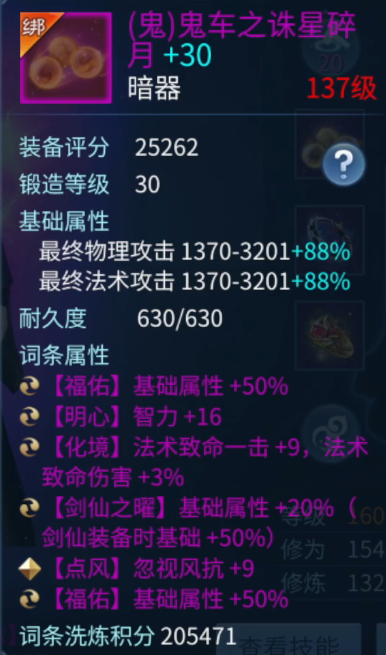 暗器更不必多说,非常高的攻击,搭配上忽视风抗和福佑,可谓是十分俱全。
