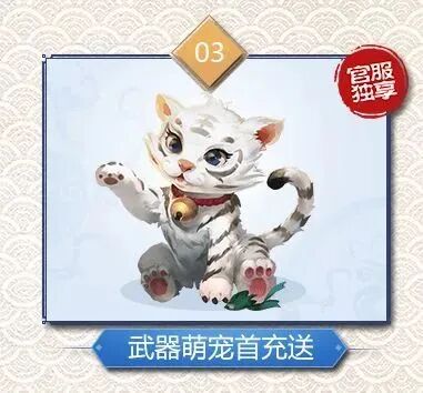 玩家只要充值任意金额,便可获得45级红色武器与强力萌宠虎咪,让你的三界之旅快人一步!