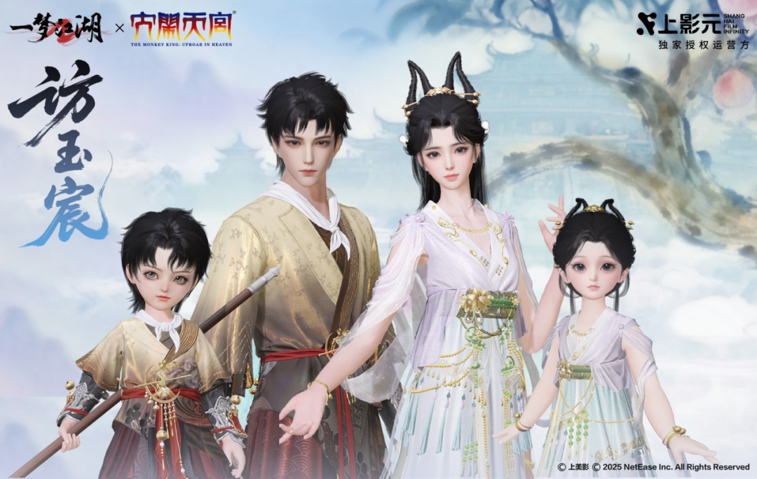 联动福利重磅来袭!一梦江湖x上美影《大闹天宫》联动期间,少侠们可获取联动专属时装·访玉宸、挂件、背挂等多重外观福利!