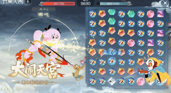 移动宫格,消除三个及以上相同图案,积累灵蕴击溃天神!同时消除三个以上图案可触发神通技能,蟠桃回血、金箍棒一击消除、天马摧毁…助你破招强攻、逆转战局。