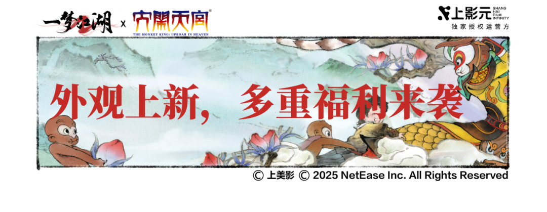 10月10日更新后至10月31日5点,一梦江湖×上海美术电影制片厂经典动画《大闹天宫》联动盛大开启!本次联动由上影元文化授权,将带来充满情怀与惊喜的系列福利活动。