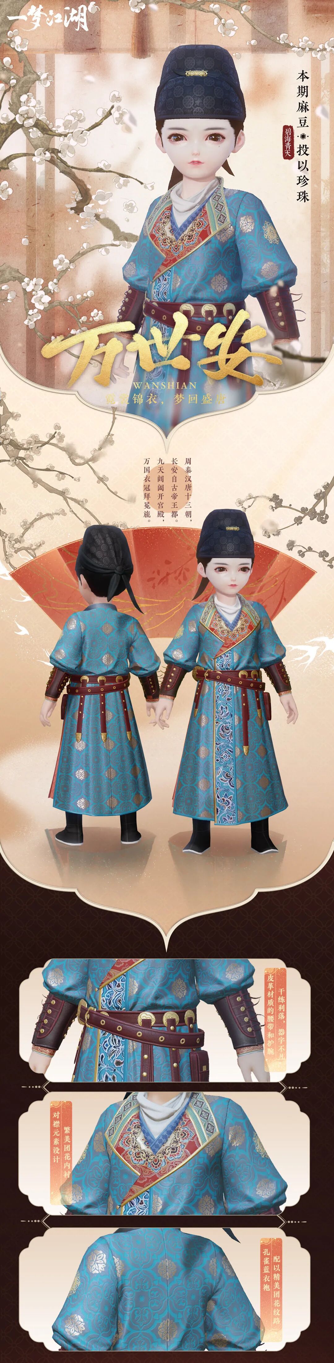 10月1日5:00至10月15日5:00,时装·万世安、十二城城市主题背挂同步上新。少侠们可以使用银钞参与抽奖活动,最多9抽带走包含时装在内的云锦奖券(绑)、小四象图、金装材料兑换券、秘笈礼·极、集阵残令·珍等好礼。获得时装·万世安同时还将赠送配套头像框,心动的少侠不要错过哦。