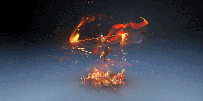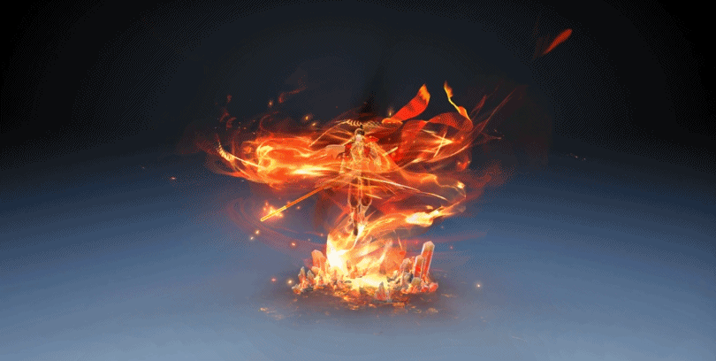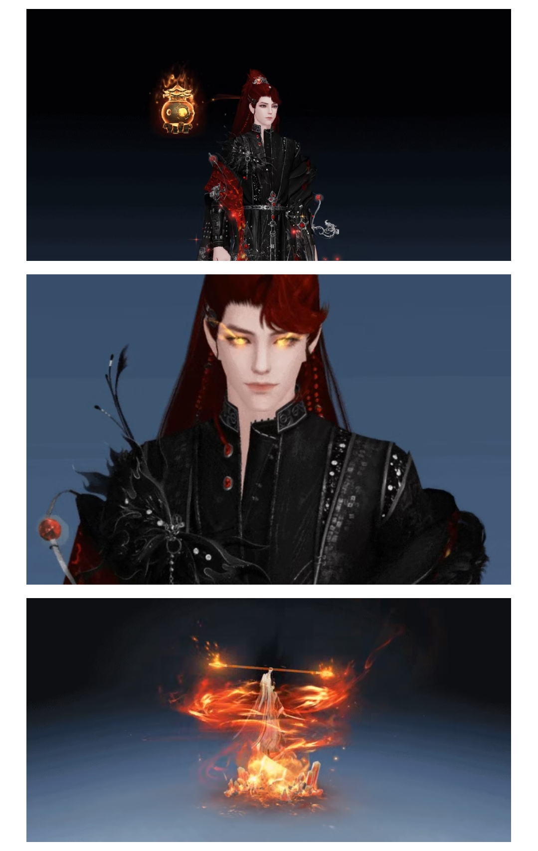 特效高潮之时将化身入圣:一袭赤色披风猎猎如血旗翻飞,在火海中得以窥见那道凛然魄影。周身火莲绽裂如红霓碎穹,灰烬纷飞处星火重聚,恍若凤凰涅槃、悟空破炉——每一缕焰光皆是新生,每一息灼热皆为道鸣。特效结束后,亦有火眼金睛效果残留于眼中。