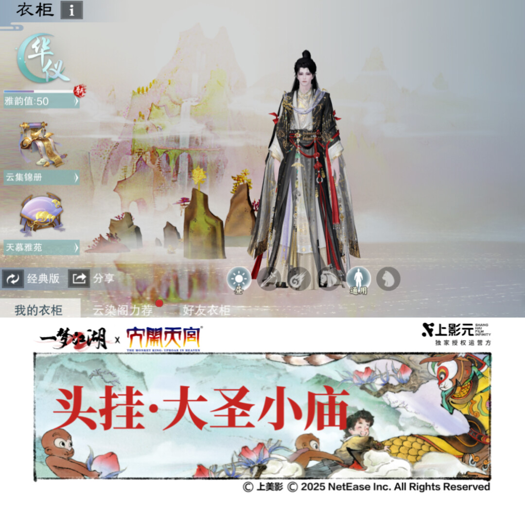 由上影元文化授权,一梦江湖与上海美术电影制片厂及其经典动画作品《大闹天宫》展开惊喜联动,我们不只重温经典,更与大圣共战江湖、同醉重阳!