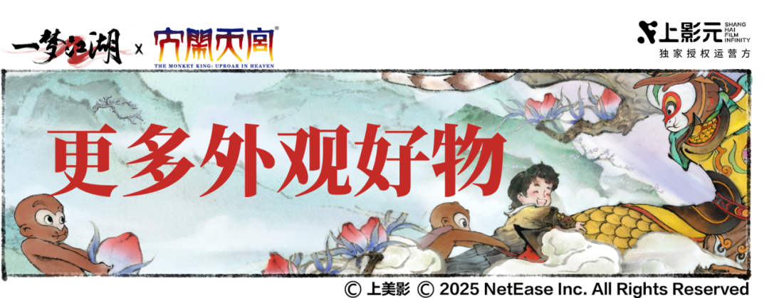 金秋十月,由上影元文化授权,一梦江湖与上海美术电影制片厂及其经典动画作品《大闹天宫》展开重磅联动,大圣不再独闯天宫,而是与你同行。