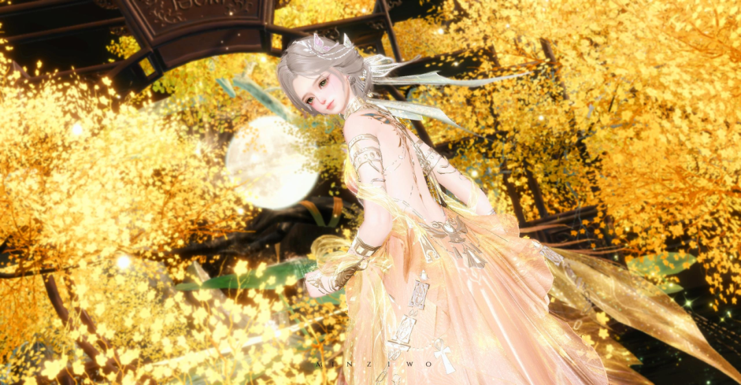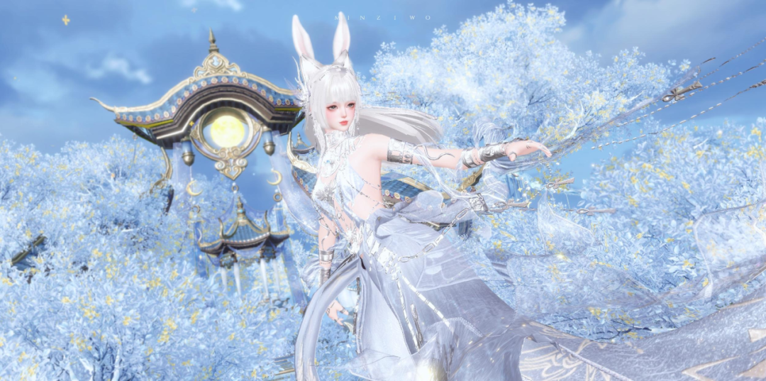 一袭银白渐变色调的【沉砂碎金】,似月光凝结成霜,清冷莹澈。诠释“月宫玉兔”的清冷气质,衣袂翩跹间,踏月而来,不染尘埃。