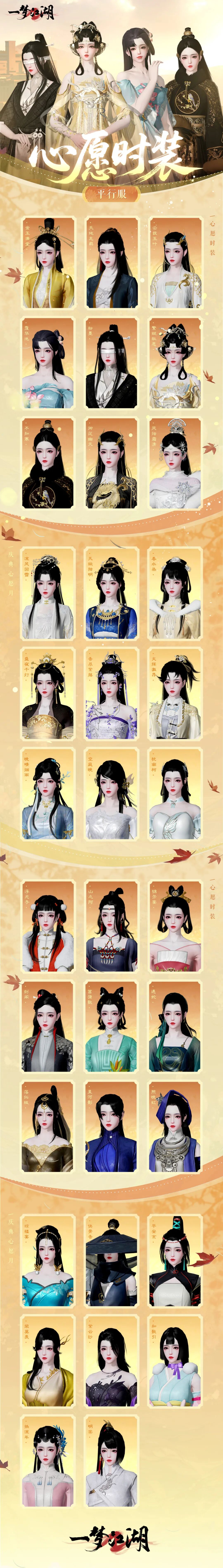 福利不断档,再包一整月。庆典心愿月和心愿时装福利即将开启,限定外观、自选茜栀膏、稀有培养材料全部免费送,待你江湖大展宏图。记得来平行江湖参与哦~