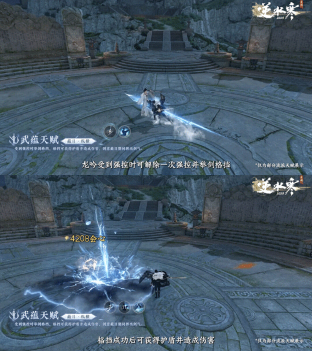 龙吟受到强控时可解除一次强控并举剑格挡,期间可移动,格挡成功后可获得护盾并造成伤害,剑意蔽日期间可移动并挥出远程剑气反击。
