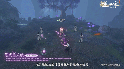 九灵通过技能对目标施加持续叠加伤害,使用长风·噬魂可提前结算目标身上持续叠加伤害的部分效果,并将结算过的持续叠加伤害扩散至周围目标。