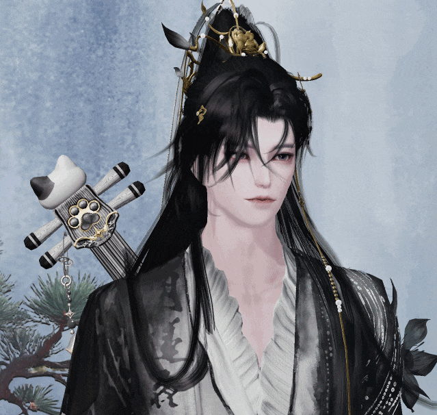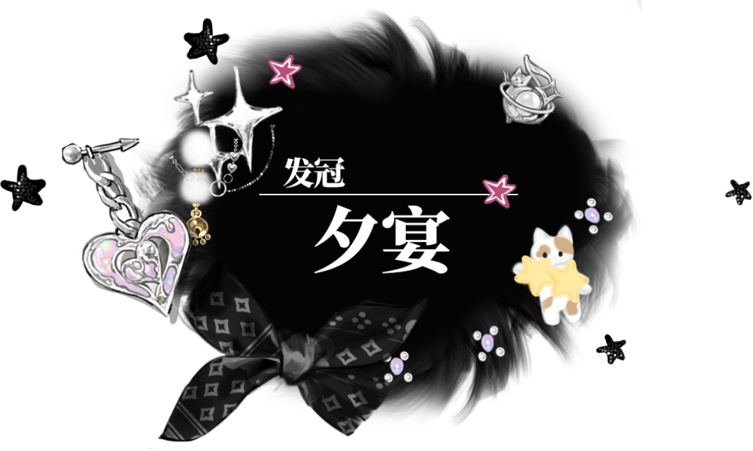 男款以粉白搭配墨黑,时装剪裁灵感来自时下流行的舞台元素,慵懒间暗藏潇洒。肩头吉他带斜挎不羁风华,摇曳处似拨动乐器时的低鸣余韵。衣摆泼洒的暗纹与霓虹光绘交织,金属链饰碰撞出摇滚的清脆节拍,毛绒耳罩覆于墨发,如狸奴蜷卧暖炉边的惬意姿态。