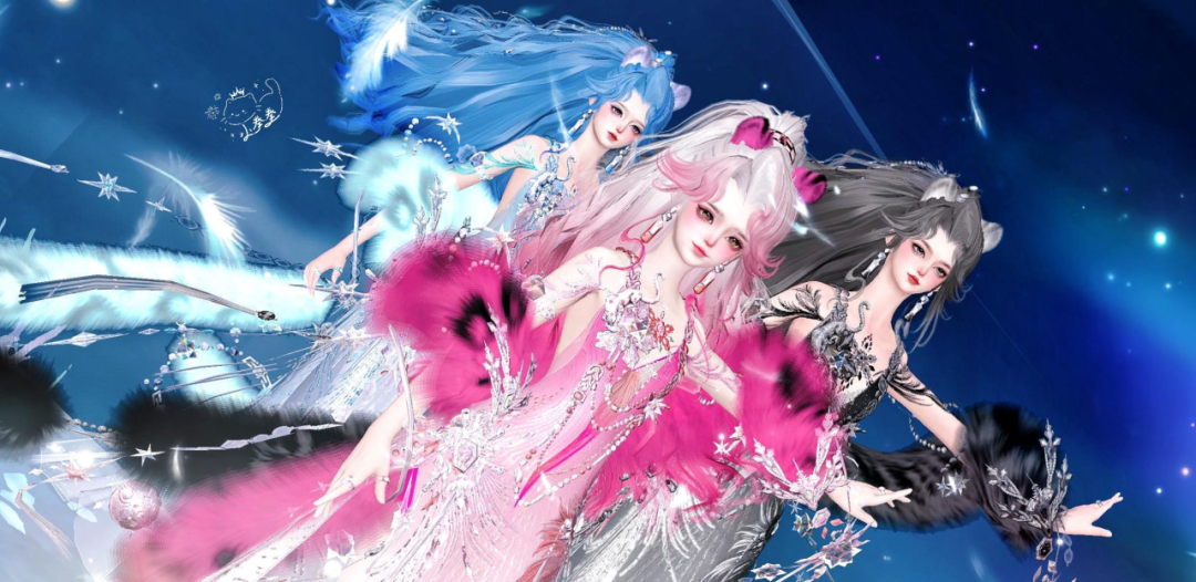 一只雪豹的出现就已经足够亮眼了,一次出现三只......莫非是暗示大家今天在游戏里会“爆爆爆”?还愣着干嘛,赶紧许愿啊!至于这三只化为人形的雪豹,粉的甜酷、蓝的梦幻、灰的冷艳,要不菌菌送你们出道吧,这个组合指定能“豹”火!