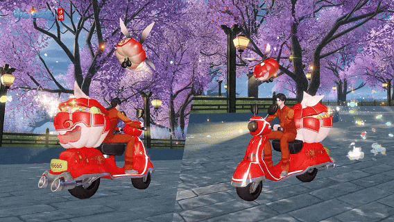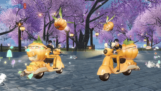 骑上我心爱的小摩托,它永远不会堵车~南瓜顺风车坐骑驾到,多色坐骑带起缤纷的糖果轨迹,专属南瓜精灵随从紧跟身后,万圣街头畅行无阻~