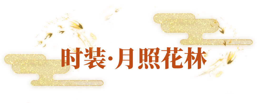 时装·月照花林以静谧夜色为底,取星尘熔成金丝,细绣疏竹几茎、飞花数朵落于肩头,顿时便觉花影摇曳,翠竹共舞。男款斜襟长袍风度翩翩;女款露肩款式雍容华贵,袖口缀着两只铃铛,叮然作歌与月相和。