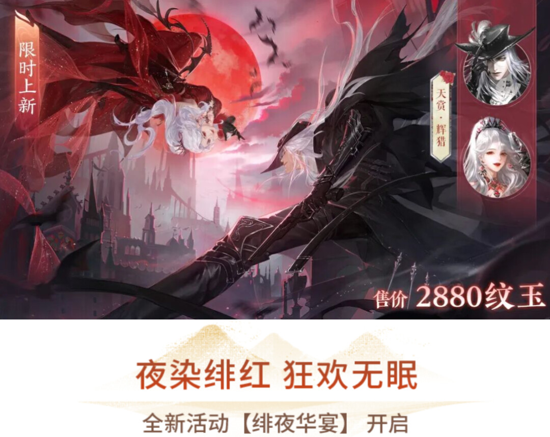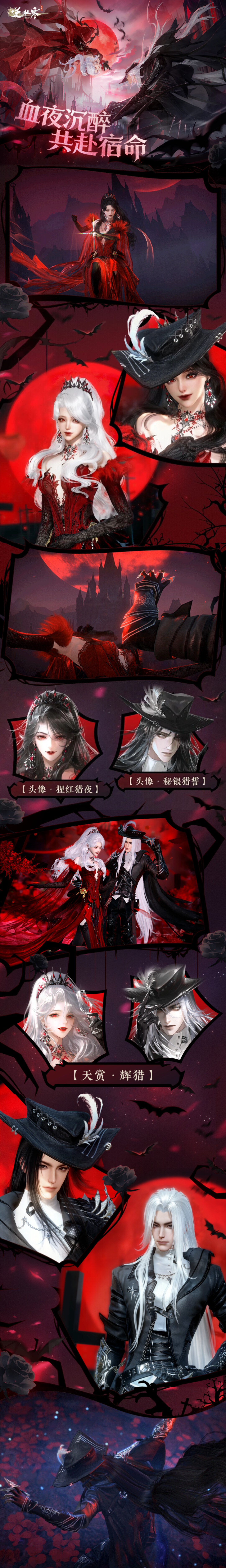 10月31日(星期五)至12月5日(星期五),逆水寒幻夜主题时装【秘银猎誓/猩红猎夜】将正式上线商城,直售价【2880纹玉】,支持使用半价券、代金券或限定纹玉购买。获取时装后,各位同门还将同步解锁黑发头像、配饰【幻夜隐猎】、单人动作、双人动作以及群龙之首动画。