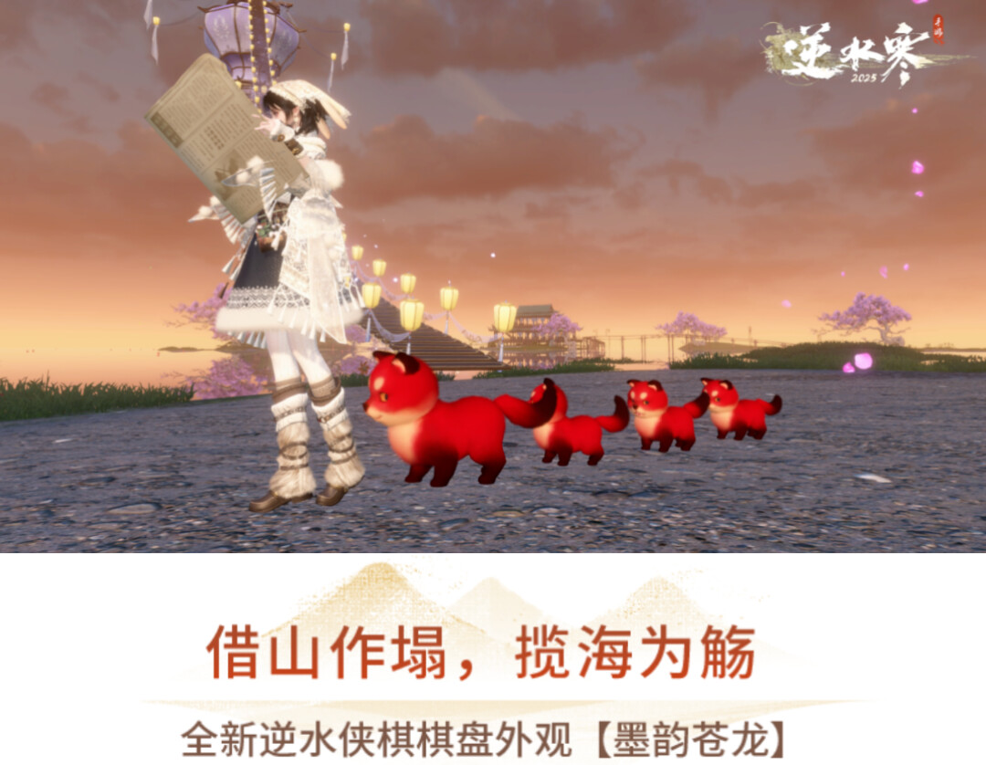 借山作塌,揽海为觞。全新逆水侠棋棋盘外观【墨韵苍龙】将于10月31日到12月5日上架天赏商店,可使用1颗天赏石兑换。