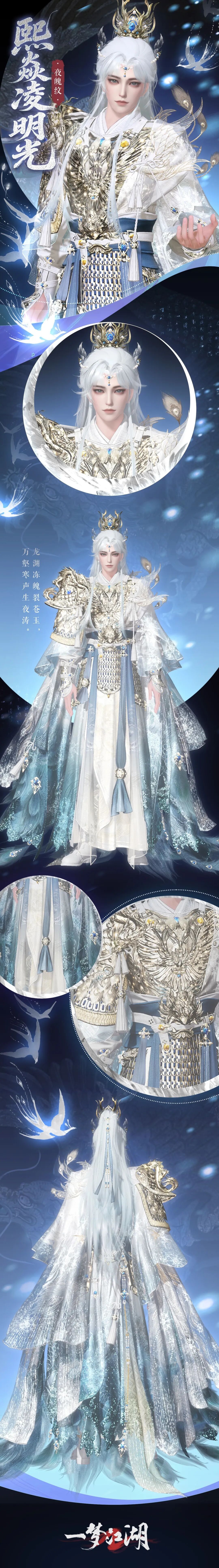 披帛·沧渊寒鸣采自北冥深处的万年寒晶,自带凛冽清辉,华美中蕴藏九天之威。少侠身披此帛,清贵与威严并存,与熙焱凌明光·夜魄纹相映成趣,尽显龙凤和鸣之祥瑞。