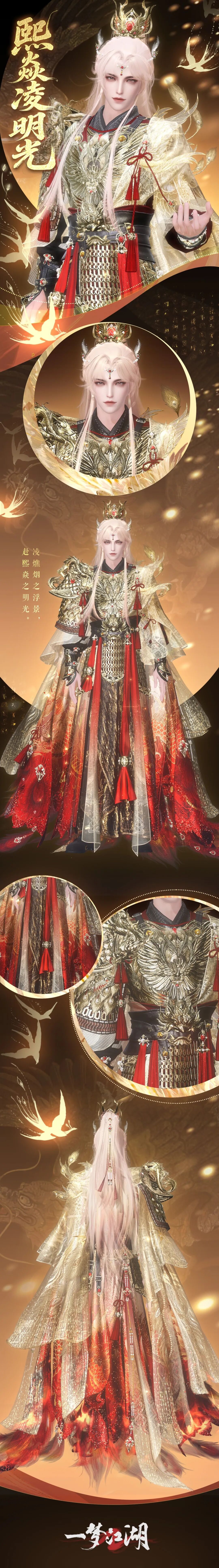 大师傅以嘲风圣君振翼镇厄、光耀九霄之姿为灵感,铸就“钧天诏九子”系列全新外观时装·熙焱凌明光、披帛·焚焰烬翎与坐骑·涅羽冲霄,集齐对应外观后可解锁同款异色纹样·夜魄纹、披帛·沧渊寒鸣,一起和小四看看叭!