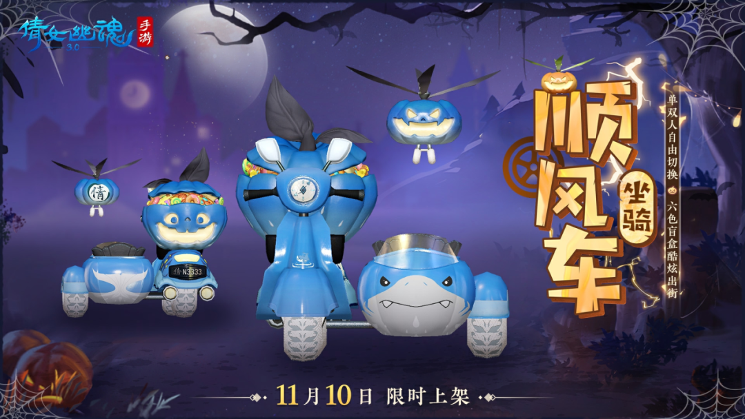 2. 尽享欢乐,外送到家!经典坐骑顺风车·坐骑盲盒将于10月31日10:00上架灵玉商城,同时盲盒内新增全新款式狸速达!璇玑阁同步开启顺风车坐骑自选礼盒(永久)的兑换,可在6个款式中自选其一获得。