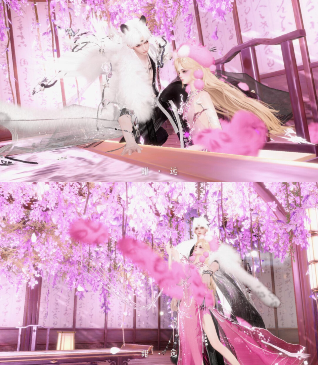 见过壁咚、腿咚,没想到还有“桌咚”?选用玫粉染色雪境之主,甜美中立刻多了几分贵气与娇俏。粉紫色的花帘如瀑布般垂落,她身披星光与甜美,他则携带着暗夜的贵气,二人融于这片温柔底色之中。速速来个动作指导,与菌菌拍一张同款发朋友圈(不是