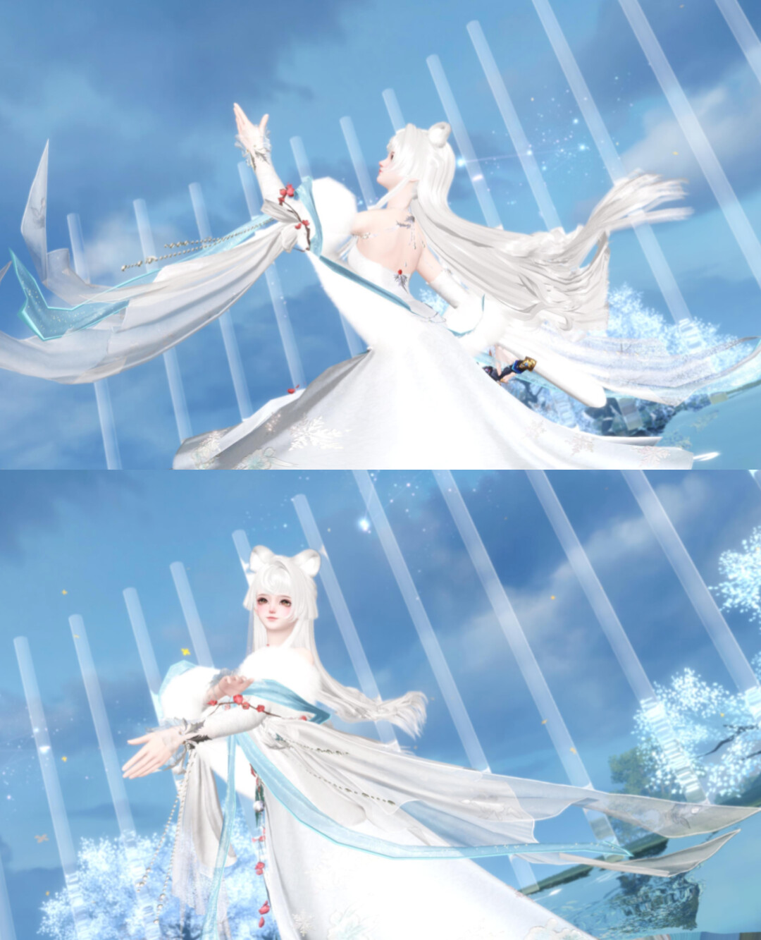 循着冰雪的痕迹向云境深处去,灵豹少女的身影在湖面处浮现。素白长裙清雅出尘,天蓝色飘带是点睛之笔,衬得人儿愈发恬静。雪色长发与发间绒耳格外灵动,一举一动都带着浑然天成的纯净。古风小生·菌菌看了表示快哉快哉!