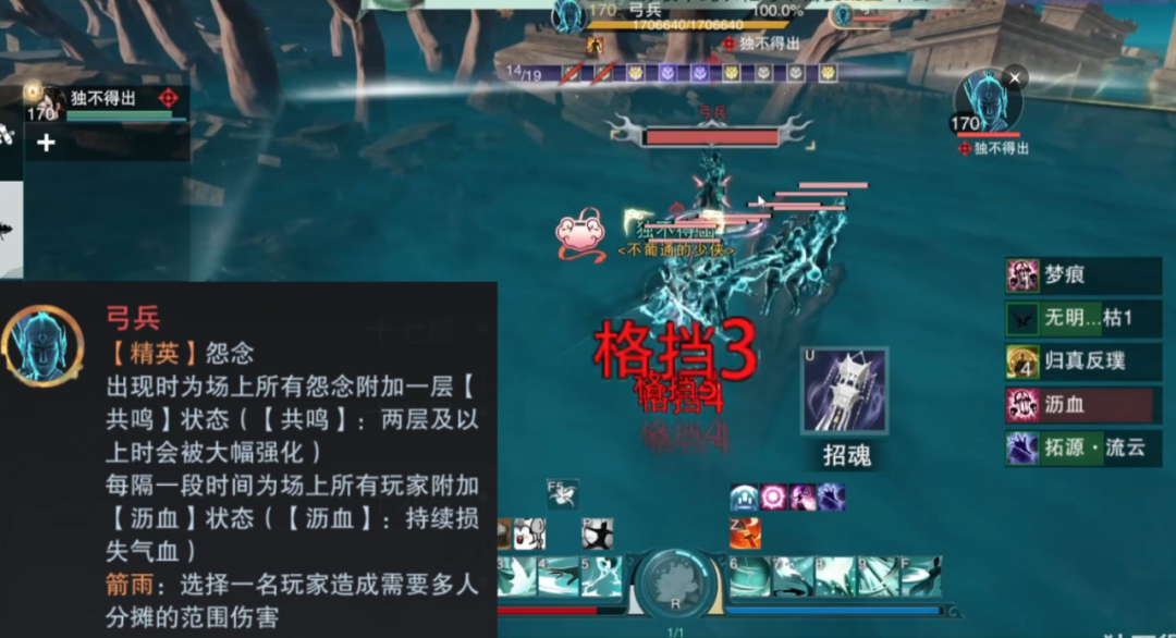 英魂:全场黄光增益小怪、大范围击退、破盾阶段(需及时打破否则造成高额伤害)、以及释放持续地火区域,踩中会受到高伤。