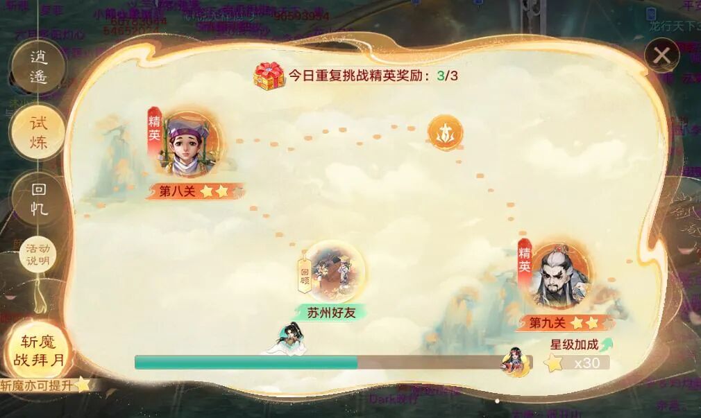 少侠需使用活动培养的李逍遥参与挑战,逐步体验“李逍遥”成长之路。