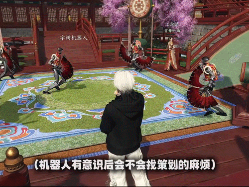 在新版本内,逆水寒正式与宇树科技达成联动合作,各位同门可以来甜水巷内,点播机器人为大家表演的【秧歌舞】!