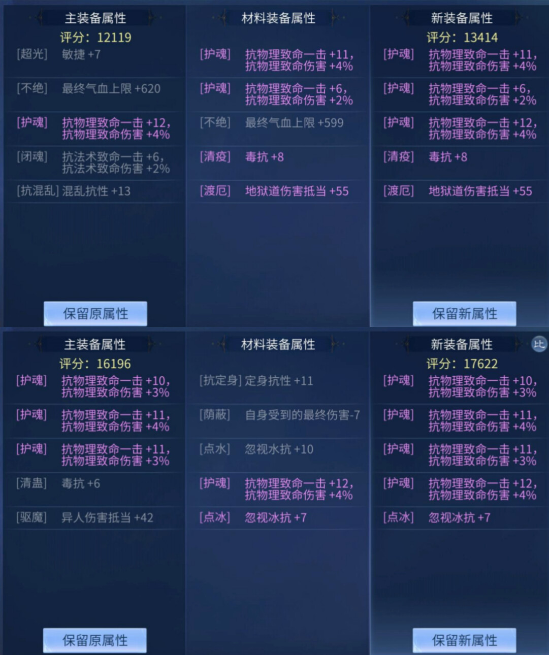 因为鬼、紫装备品质不同,所以在熔炼时不能锁定词条,导致不同品质装备之间的熔炼难度较高,但本次投稿就有一位小伙伴,仅用3次就将鬼品质原生背饰+紫背饰,熔炼为固定4抗物理致命背饰,当真是“气运之子”。