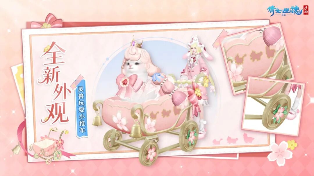 推车为表情动作,可解锁灵宠推车功能,主城和野外均可使用,可以推着心爱的灵宠逛街啦!
