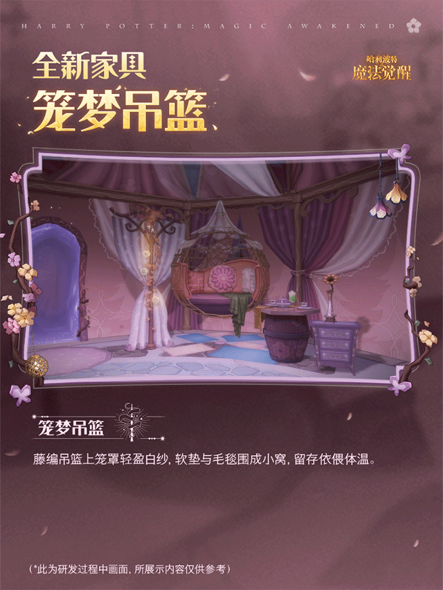 -当巫师抽中家具大奖,即可获得本期最珍贵的5件家具,即「壁纸·缱绻心房」、「吊灯·蝶萦花盏」、「帐幕·柔蔓垂帘」、「沙发·笼梦吊篮」、「音响·绯梦留声」;